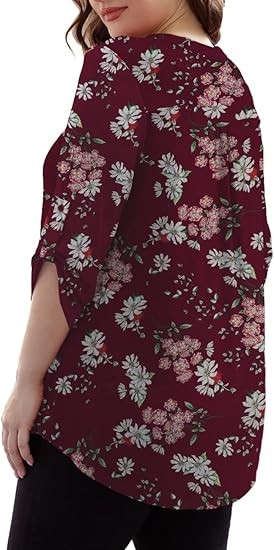 【SIZE】Womens plus size tops, plus size blouses for women, 6 US sizes(M,L,1X,2X,3X,4X) 【FEATURES】Floral Print, 3/4 sleeve, fashion V neck design,plus size tops for women, swing hem drapes nicely and hides your belly & hips well, adds femininity 【PAIRS WITH】Plus size 3/4 sleeve tops for women, plus size blouse, match this plus tunics with jeans, leggings in Spring, Summer and Fall 【OCCASIONS】 Dressy casual business fashion comfy loose fitting womens plus size blouses, Suitable for Office/ Dating/ Formal Occasions/ Daily Casual Wear/ Workwear, etc