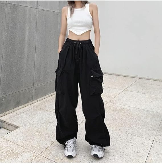 Material: Women baggy cargo pants were made of cotton blend, comfortable, breathable, lightweight, soft, comfy, durable. Design: Retro fairy grunge harajuku gothic pants for 90s egirls, vintage style tripp aesthetic, wide leg trousers, solid color long pants with pockets, low/mid waist for daily wear. Features: Wide leg, straight leg, low/mid waisted, solid color, cargo pants baggy, y2k pants, goth pants. Alt girl clothes, fairy grunge clothing, alt emo pants, techwear pants, 90s vintage pants for women, Japanese harajuku streetwear, punk pants.
