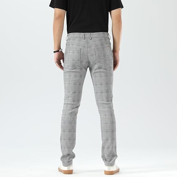 Men's Plaid Pants Skinny Dress Pants for Men Skinny Chino Pants Men