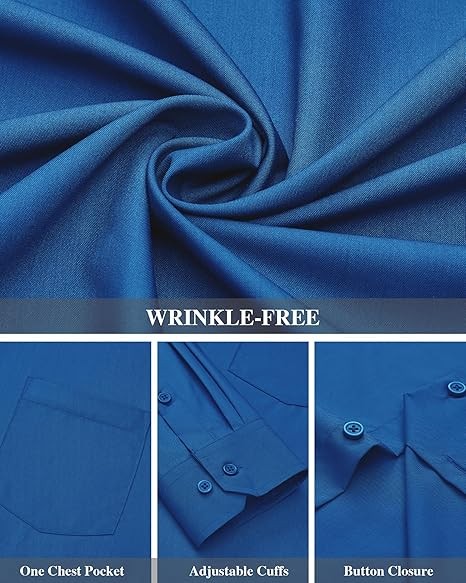 WRINKLE-FREE: The mens dress shirt is made of high quality fabrics and special craftsmanship, wrinkle-resistant and easy to iron and care for, keep the appearance neat and clean, provide you with a comfortable wearing experience CLASSIC DESIGN: This wrinkle-free shirt features a single chest pocket for small items or decorations. Spread collar, button placket, adjustable cuffs for a classic look that flatters most body shapes OCCASION: Business/ Wedding/ Party/ Dating/ Office/ Nightclub, this mens formal shirt is the perfect choice for both formal events and everyday casual wear when paired with a suit, vest, bow tie, and dress pants Size: The button down long sleeve shirts are US regular fit tailoring style,a variety of sizes and colors for you to choose,please refer to the size chart to choose the size that suits you Washing Method: Mens shirt is recommended to hand wash or machine wash in cold water to protect the fabric's texture and color. The dress shirt can be ironed at low temperatures