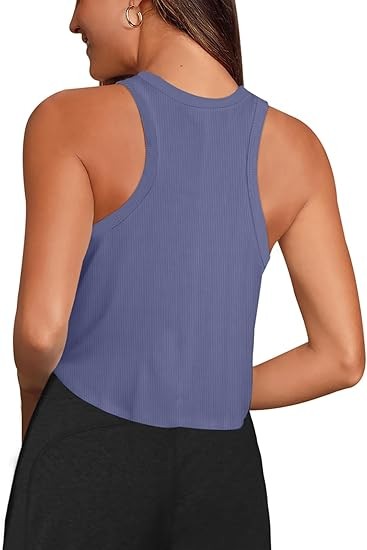 Womens Crop Tops Sleeveless Workout Tops Halter Neck Flowy Athletic Shirts Cropped Tank Muscle Tank