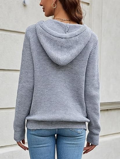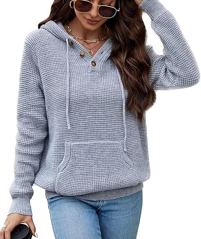 For an oversized look, choose your normal size; for a fitted look, choose one size smaller. Please consult the size chart before placing your order to ensure the best fit. Model is wearing size S and is 5'9'' tall, BWH: 33.8'', 24.8'', 36.2''. S=4-6, M=8-10, L=12-14, XL=16-18. Fall Oversized Hoodies: Wear this cozy trendy sweater hoodie with three buttons that you can open or close as needed. The cuffs and hem are designed with elastic ribbed patterns, adding a sense of fashion and fit. Knitted Long Sleeve Sweatshirts: Comfy drawstring hoodie with a kangaroo pocket is a classic design that gives you a casual style. It is also convenient to carry things like phone or keys and keep your hands warm.