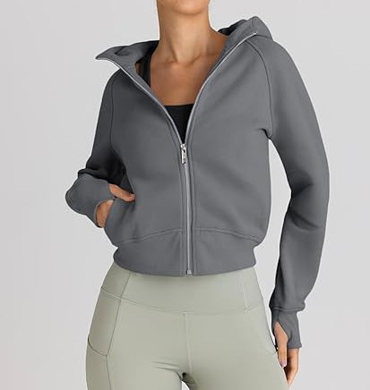 Womens Zip Up Hoodies Jackets Cropped Sweatshirts Fleece Fall Outfits Casual Comfy Y2k Tops Winter Clothes 2030