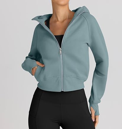 Womens Zip Up Hoodies Jackets Cropped Sweatshirts Fleece Fall Outfits Casual Comfy Y2k Tops Winter Clothes 2032
