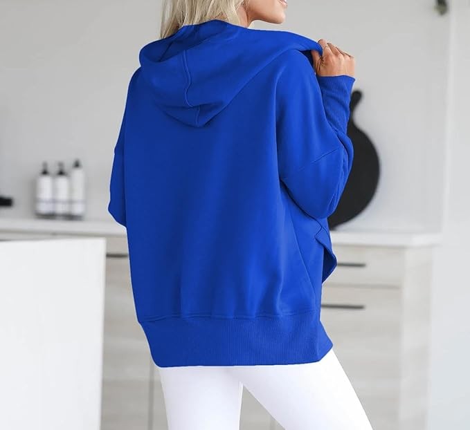 Features: This trendy hoodie sweatshirt for women features long sleeves, a button-down V-neck, a large kangaroo pocket, and an oversized design for a relaxed and baggy appearance. The cuffs, hem, and pocket edges are ribbed for ample elasticity, offering a superior wearing experience suitable for any body type. It's a great addition to your wardrobe.