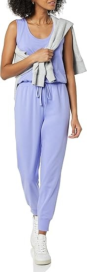 REGULAR FIT: Close but comfortable fit through chest, waist, hip and thigh STUDIO LIGHT TERRY FLEECE: A lightweight and breathable fabric with an ultra-soft finish. This terry fleece has a moisture-wicking finish, helping you stay comfortable, and a 4-way gentle stretch for more flexibility during workouts. STUDIO JUMPSUIT: Relax and lounge in this effortless all-in-one jumpsuit. Designed to sit just above the ankle. Whether you're heading out for a jog or running errands with the kids, our apparel is made to work out, live in, and lounge.