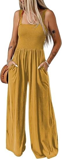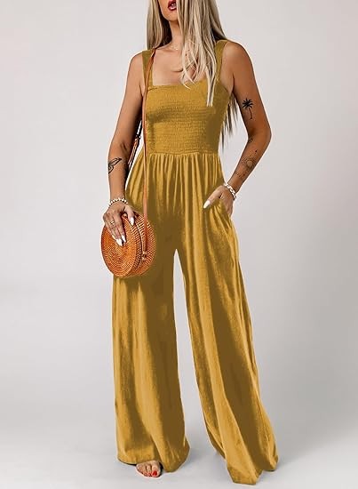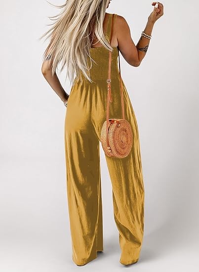 Women's Overalls is made with lightweight and soft material, which are smooth, elastic and stretchable, flexible and breathable, comfortable to wear. Not see through. Feature: One Piece Sleeveless Jumpsuits, Square Neck, Wide Leg Pants, Two Side Pockets, Solid Color, Stretchable Long Pants Jumpsuit, Loose Fit, Casual Style. Match: Great with jacket, sneakers, Sandals, Heels and Beach hat for outwear. A perfect jumpsuit for your summer. Wear a cardigan over wide leg jumpsuit /dress on cool weather. Ocassion: One Piece Fashion Long Jumpsuit Overalls Suitable for Beach, Travel, Vacation, Office, Streetwear, Cocktail, Daily Life. Perfect Match with T-Shirts, Tops, Blouse and Sneakers.