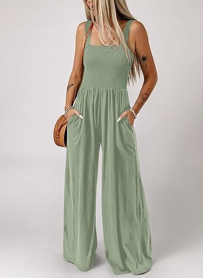 Women's Overalls is made with lightweight and soft material, which are smooth, elastic and stretchable, flexible and breathable, comfortable to wear. Not see through. Feature: One Piece Sleeveless Jumpsuits, Square Neck, Wide Leg Pants, Two Side Pockets, Solid Color, Stretchable Long Pants Jumpsuit, Loose Fit, Casual Style. Match: Great with jacket, sneakers, Sandals, Heels and Beach hat for outwear. A perfect jumpsuit for your summer. Wear a cardigan over wide leg jumpsuit /dress on cool weather. Ocassion: One Piece Fashion Long Jumpsuit Overalls Suitable for Beach, Travel, Vacation, Office, Streetwear, Cocktail, Daily Life. Perfect Match with T-Shirts, Tops, Blouse and Sneakers.