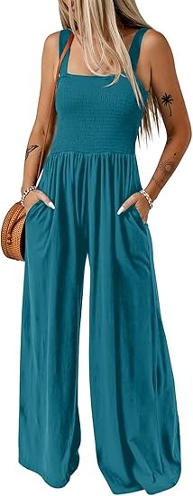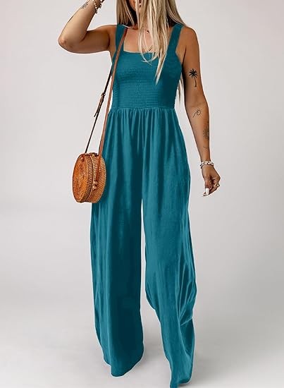 Women's Overalls is made with lightweight and soft material, which are smooth, elastic and stretchable, flexible and breathable, comfortable to wear. Not see through. Feature: One Piece Sleeveless Jumpsuits, Square Neck, Wide Leg Pants, Two Side Pockets, Solid Color, Stretchable Long Pants Jumpsuit, Loose Fit, Casual Style. Match: Great with jacket, sneakers, Sandals, Heels and Beach hat for outwear. A perfect jumpsuit for your summer. Wear a cardigan over wide leg jumpsuit /dress on cool weather. Ocassion: One Piece Fashion Long Jumpsuit Overalls Suitable for Beach, Travel, Vacation, Office, Streetwear, Cocktail, Daily Life. Perfect Match with T-Shirts, Tops, Blouse and Sneakers.