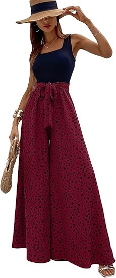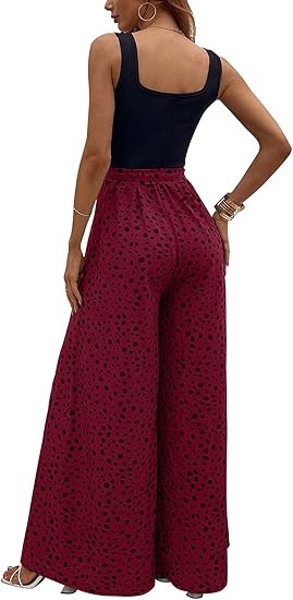 Material:Polyester and spandex.Well made,comfortable fabric.Casual comfy as pajama pants,lightweight and breathable. Design:Dalmatian print,colorblock,sleeveless,square neck,wide leg,empire waist,tank top jumpsuit,with belt,loose and casual style will be your best choice in summer! Occasion:The tank top jumpsuits for women are perfect for spring,summer,fall,going out,beach,vacation,shopping,homeware,date,yoga,party,club,garden party,wedding,cocktail,honeymoon,work,any outdoor or indoor activities. Match:You can pair this color block wide leg pants with variety of shirts,blouses,tunics,sandals,sneakers or heels to complete casual look that's easy to love all season long to show your curves and flatter your body.