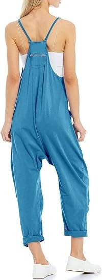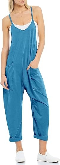 Features: Women sleeveless rompers, with relaxed fit design, solid color, two big side pockets, low crotch, back pocket decoration, long pants jumpsuits, cute and stylish outfits for women