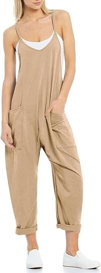 Womens Casual Sleeveless Jumpsuits Spaghetti Strap Loose Romper Long Pants with Pockets