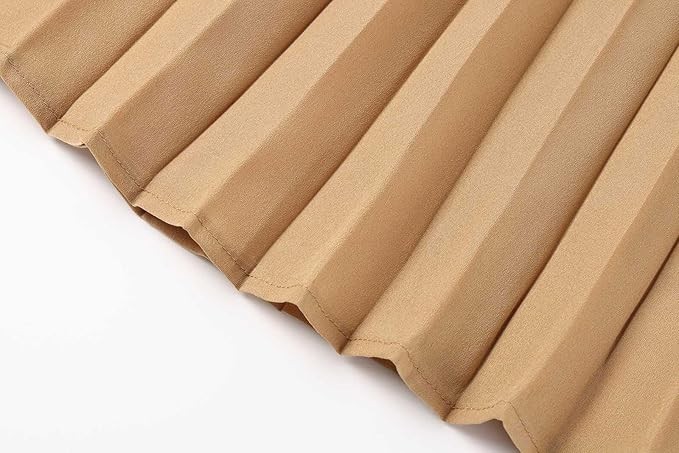 Womens Skirt Leopard Print Midi Long Shirring Pleated Skirts High Waisted A Line Skirts