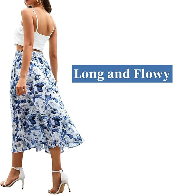 ? 【Hidden Pocket】: These long skirts for women have two large pockets, which can store mobile phones, keys, and other items, freeing your hands. ? 【Elastic Waistband Design】: The elastic waistband of this long skirt has strong elasticity. suitable for most body types, and is super comfortable to wear in spring and summer. ? 【High-Quality Fabric】: These women's skirts are made of high-quality fabric, which is light, soft, breathable, comfortable, and full of texture. Wearing this maxi skirt in summer will make you very comfortable. ? 【Applicable Occasions】:This long maxi skirt can be paired with shirts, high heels, or flat shoes, making you elegant and feminine. It also suits various occasions, such as dating, parties, beaches, holidays, weddings, cocktail parties, and daily leisure.