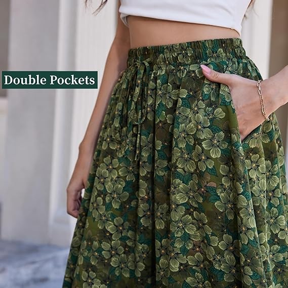 ? 【Hidden Pocket】: These long skirts for women have two large pockets, which can store mobile phones, keys, and other items, freeing your hands. ? 【Elastic Waistband Design】: The elastic waistband of this long skirt has strong elasticity. suitable for most body types, and is super comfortable to wear in spring and summer. ? 【High-Quality Fabric】: These women's skirts are made of high-quality fabric, which is light, soft, breathable, comfortable, and full of texture. Wearing this maxi skirt in summer will make you very comfortable. ? 【Applicable Occasions】:This long maxi skirt can be paired with shirts, high heels, or flat shoes, making you elegant and feminine. It also suits various occasions, such as dating, parties, beaches, holidays, weddings, cocktail parties, and daily leisure.