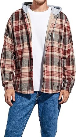 Comfortable Fit: This long sleeve flannel shirt crafted with a 100% Cotton flannel shell and soft beige sherpa lining will keep you warm all season long. Your new wardrobe favorite. Features: Button, long sleeves(The sleeves lined), 2 side pockets, drawstring hood, plaid element outer and fuzzy fleece inside, to provide extra warmth and comfort. Size: Our flannel shirts are regular fit style, a variety of sizes and colors for you to choose, please refer to the size chart to choose the size that suits you. Occasion: This is a versatile hooded jacket that will look stylish with your Tshirt and jeans. Perfect For Daily Wear, such as hiking, trekking, camping, hunting, biking and other outdoor activities. Any occasion is perfect in Spring, Fall and Winter.