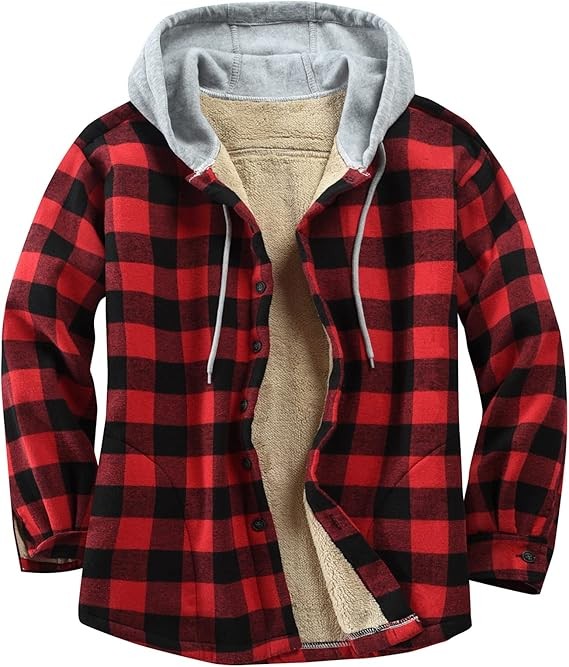 Comfortable Fit: This long sleeve flannel shirt crafted with a 100% Cotton flannel shell and soft beige sherpa lining will keep you warm all season long. Your new wardrobe favorite. Features: Button, long sleeves(The sleeves lined), 2 side pockets, drawstring hood, plaid element outer and fuzzy fleece inside, to provide extra warmth and comfort. Size: Our flannel shirts are regular fit style, a variety of sizes and colors for you to choose, please refer to the size chart to choose the size that suits you. Occasion: This is a versatile hooded jacket that will look stylish with your Tshirt and jeans. Perfect For Daily Wear, such as hiking, trekking, camping, hunting, biking and other outdoor activities. Any occasion is perfect in Spring, Fall and Winter.