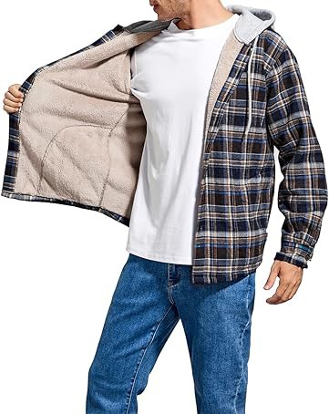 Comfortable Fit: This long sleeve flannel shirt crafted with a 100% Cotton flannel shell and soft beige sherpa lining will keep you warm all season long. Your new wardrobe favorite. Features: Button, long sleeves(The sleeves lined), 2 side pockets, drawstring hood, plaid element outer and fuzzy fleece inside, to provide extra warmth and comfort. Size: Our flannel shirts are regular fit style, a variety of sizes and colors for you to choose, please refer to the size chart to choose the size that suits you. Occasion: This is a versatile hooded jacket that will look stylish with your Tshirt and jeans. Perfect For Daily Wear, such as hiking, trekking, camping, hunting, biking and other outdoor activities. Any occasion is perfect in Spring, Fall and Winter.