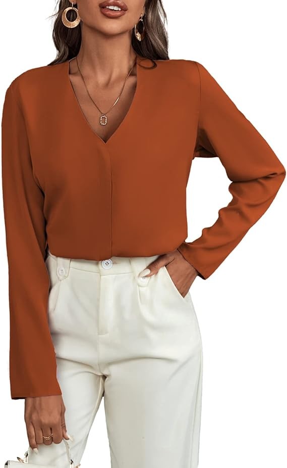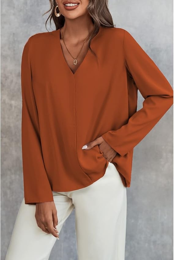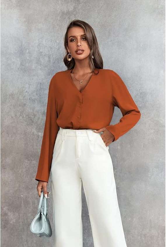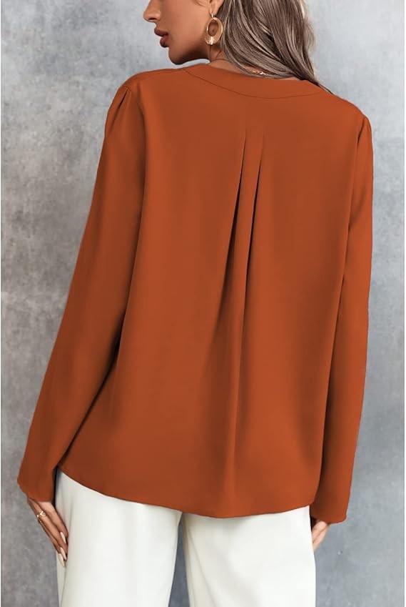 Women's Long Sleeve Shirts V Neck Business Casual Plain Work Blouses Tops