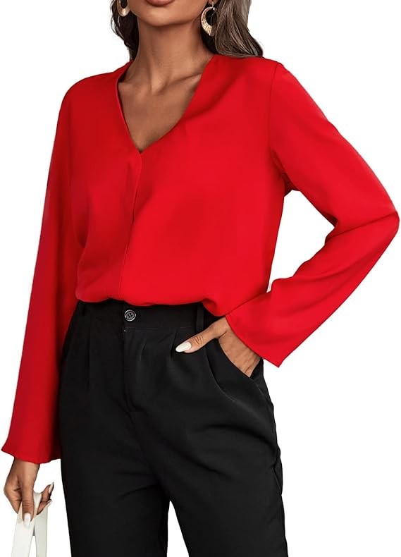 Women's Long Sleeve Shirts V Neck Business Casual Plain Work Blouses Tops