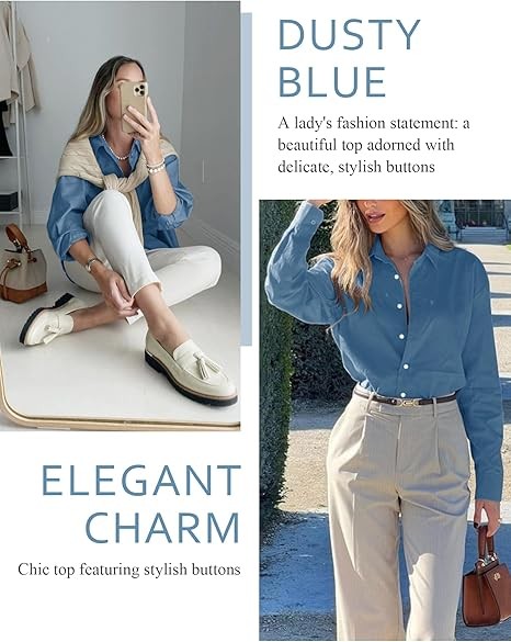 Effortless Style, Multiple Options: Elevate your look with our black button up shirt women. These business casual outfits for women seamlessly blend comfort with chic style. The 3/4 sleeves offer versatility—wear them as is, roll them up, or opt for a classic long sleeve look. Perfect for various weather, occasions, and outfit needs, this shirt provides a simple yet stylish solution for your wardrobe. Ultimate Comfort, Latest Style: Stand out in our 3/4 length sleeve womens tops. Crafted from a cozy blend of 95% Rayon and 5% Spandex, these shirts offer unbeatable comfort. With a relaxed fit and lightweight feel, these business casual tops for women are effortlessly stylish. A must-have for your wardrobe, they strike the perfect balance between comfort and trendy fashion. Effortless Elegance: Introducing a must-have for your closet—the women's clothing! Slip into the carefree energy of our blouses & button-down shirts and share your style masterpieces with us. Perfect for every occasion, these work shirts for women seamlessly elevate your look, be it for casual days, work, travel, or a night out. Daily Chic: Elevate your style with this womens spring fashion 2025, a daily essential. Pair it effortlessly with jeans, leggings, pants, or shorts for a chic look suitable for various occasions—parties, club nights, dinners, dates, weddings, and vacations. Transition seamlessly into professional settings by incorporating it into your work or business attire, ideal for school, office, interviews, and formal occasions.