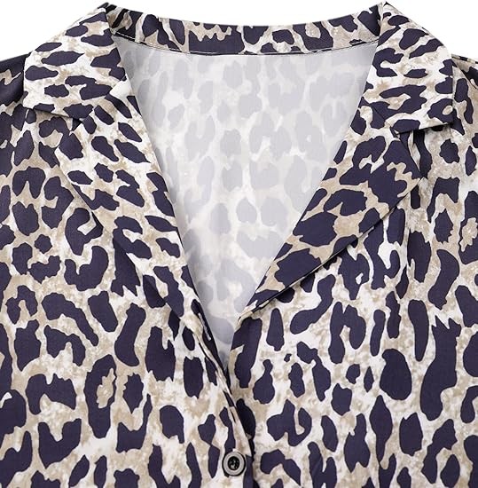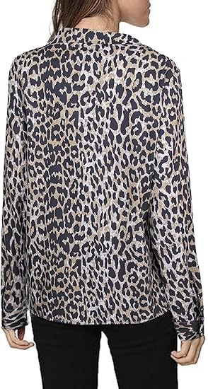 [Material]: The business casual blouse made of Polyester, chiffon feeling fabric and no stretch; very soft and comfy, close to skin [Features]: Dalmation print shirt for women, casual v neck, long sleeve, button down, lapel collar, trendy leopard print / polka dot print / solid color, relaxed fit [Occasion]: Elegant work blouse, with stylish printed pattern, perfect for work, business, office, date, cocktail, club, wedding, holiday, shopping or daily casual wear [Style]: Casual, elegant and cute style, this fashion leopard print top can be worn with denim jeans, skinny pants, shorts, boots and heels in Summer/ Fall/ Winter/ Spring