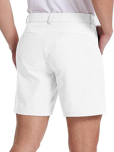 Lightweight & Anti-Wrinkle Fabric: Made from performance fabric, men's golf shorts are lightweight and breathable with 4-way stretch, dry fit, UPF 50+, anti-wrinkle and easy to care for, keeping you dry and comfortable all day long. 5 Practical Pockets: Golf shorts men 7 inch inseam have 1 side hidden zippered pocket on your right side, store your phone,keys or cards securely. 2 convenient deep hand pockets and 2 back snap pockets to storage your values, golf essentials and other small items. Closure Type: Mens dress shorts with elasticized waistband and 1.7" belt loops designed to enhance the fit of the product. Zipper fly and button closure are durable for any occasion.