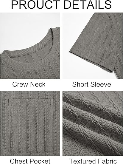 Mens Short Sleeve T-Shirts Casual Knit Texture Crewneck Pocket Tee Tops Loose Fit Summer Shirt