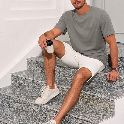 Features: Lightweight pocket tees for men, jacquard textured pattern, crew neck, ribbed neckline, short sleeve, single pocket at chest, loose fit, fashionable oversized men's t-shirt Good Quality: This crewneck t-shirt is made of premium material, jacquard knitted fabric, it is good stretchable, breathable, comfortable, soft and skin-friendly