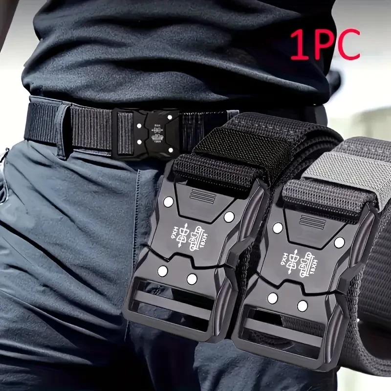 Tactical Belt with Quick-Release Plastic Buckle - Adjustable Durable Black Fabric Belt for Outdoor Training & Casual Wear - Unisex