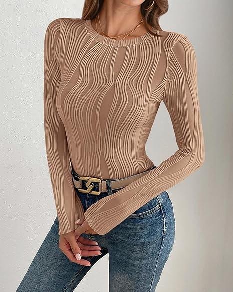 Feature: S=US 4-6, M=US 8-10, L=US 12-14, XL=US 16-18, XXL=US 20 / Womens Tops / Long Sleeve Tops For Women / Round Neck Tops For Women / Slim Fit Blouse For Women / Classy Solid Color T Shirts / Y2K Tops / Womens Fall Tops / Spring Shirts For Women / Knitted Blouse For Women / Ripple Jacquard Detail / Basic Tee Shirts For Women / Textured Tops / Fashion Pullover Top / Soft And Stretchy / With Inner Lining, Not See Through Material: Made Of High Quality Polyester Fabric, Womens Sexy Cropped Top Provides Excellent Stretch And Optimal Comfort. The Soft And Breathable Knit Material Is Wonderfully Comfortable On The Skin, Which Offers You First-Class Comfort