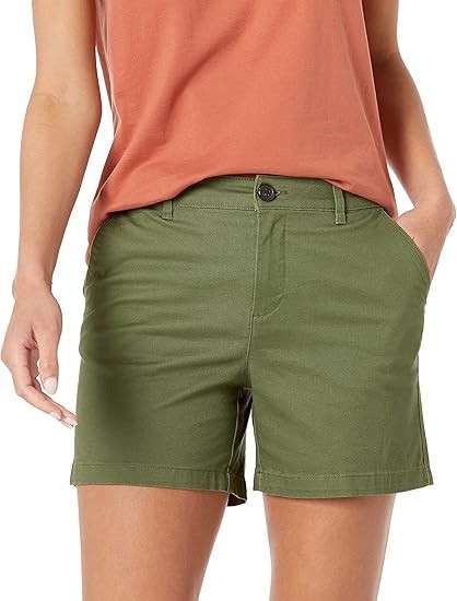 CLASSIC KHAKI SHORT: These classic Khaki shorts are the ultimate summer style. Offering a clean, gently structured silhouette, these shorts also fit with comfort and ease for at work, weekend exploring, or running errands. Complete your look with Essentials Women's Sneakers or Sandals.