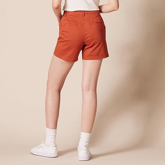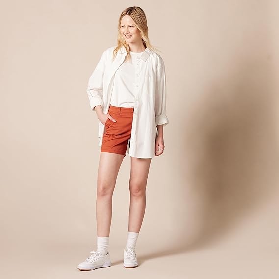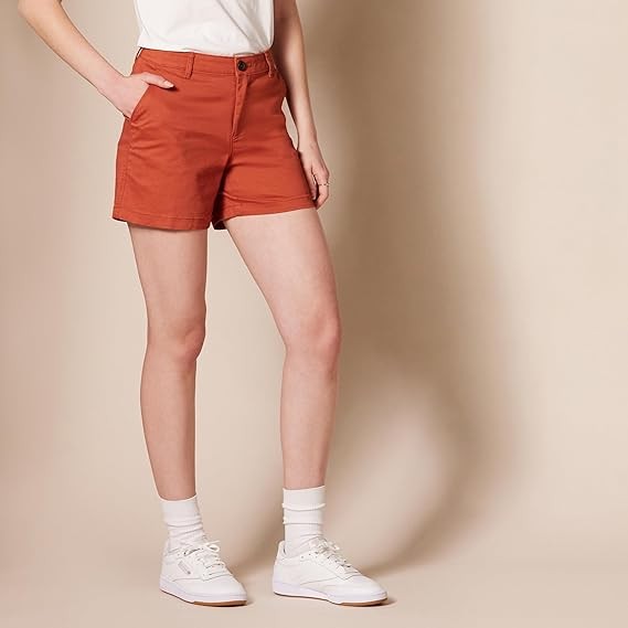 STRAIGHT FIT: Slim fit through the hip and thigh, straight through the thigh and leg opening. Also offered in Curvy sizes for a curvier fit through the hip and a narrower waist. STRETCH COTTON TWILL: Washed for softness, this cotton twill is naturally breathable and has a bit of stretch for comfort and flexibility. CLASSIC KHAKI SHORT: These classic Khaki shorts are the ultimate summer style. Offering a clean, gently structured silhouette, these shorts also fit with comfort and ease for at work, weekend exploring, or running errands. Complete your look with Essentials Women's Sneakers or Sandals.