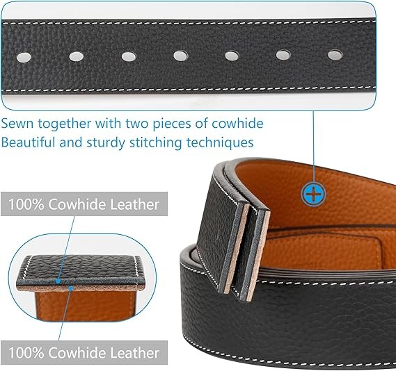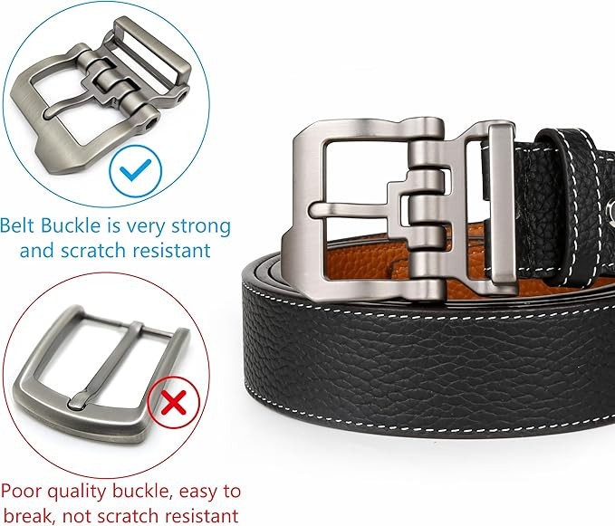 Real Material : These Belts for men are made of Genuine cowhide, which are strong and durable. The fashion style design buckle is made of Zinc Alloy.The heavy Duty Buckle is very strong and scratch resistant which made to last.