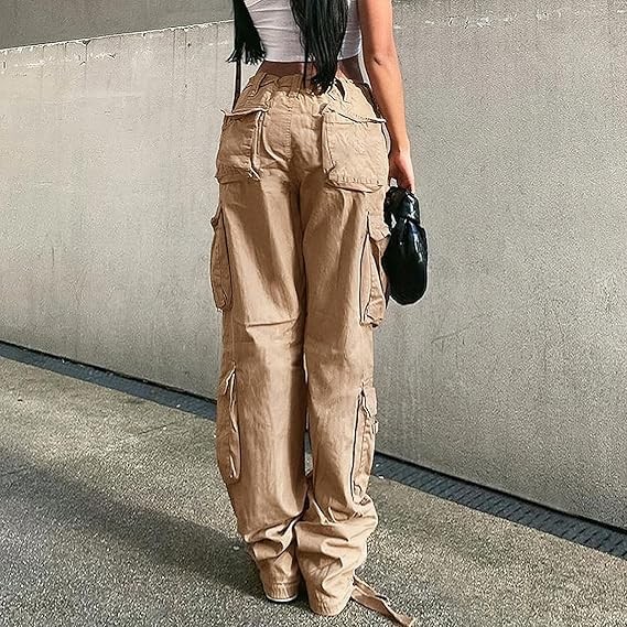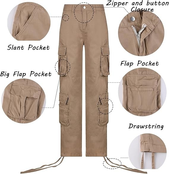 Material-The cargo pants women are mainly made of 75% cotton and 25% polyester,skin-friendly,breathable,soft and comfortable. Features-Women's Baggy Cargo Pants,high rise wide leg,hide zipper for easy opening and closing,practical pocket design,loose fit for maximum free,trend and fashionable. Size-The straight leg cargo pants for women are available in XS/S/M/L.Meet your size needs,great gifts for friends or family members.Please allow 1-2cm differences due to manual measurement and feel.Please check the size chart carefully before buying.