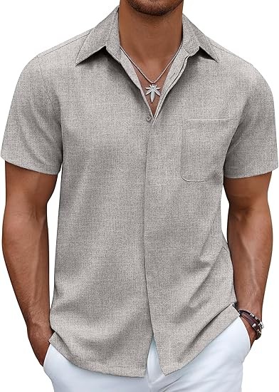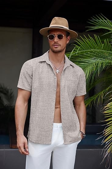 UNLEASH YOUR SUMMER SPIRIT: The COOFANDY men's linen short sleeve button down shirt isn't just a casual untucked beach shirt. Its lightweight, breathable fabric makes it perfect for any summer activity, ensuring you stay comfortable, cool, and stylish whether you're lounging on the beach or attending a summer wedding CLASSIC AND CASUAL DESIGN: Elevate your style with the COOFANDY casual vacation wedding shirt, featuring a button down closure, short sleeve, and a convenient chest pocket. Designed to offer a versatile regular fit and loose fit, this casual untucked vacation wedding dress shirt enhances your summer style effortlessly A SUMMER WARDROBE MUST HAVE: The COOFANDY men's linen wedding dress shirt button up classic yet casual style is perfect for summer vacation. Match it with shorts for a relaxed beach day or dress it up with casual linen pants for a more polished dress look. The button down design and chest pocket add a touch of practicality and elegance, making it suitable for any summer and spring occasion PERFECT FOR EVERY SUMMER OCCASION: From beach parties and tropical getaways to casual vacations and weddings, coofandy cuban big and tall Hawaiian shirt is your go-to choice. Its casual elegance makes it suitable for every occasion, ensuring you always look your best. It's also an ideal gift for husbands, fathers, sons, and friends EASY BREEZY CARE: Keeping your summer style fresh is a breeze with the COOFANDY casual vacation wedding loose fit shirt. Simply machine wash and hang to dry. The durable fabric resists shrinkage and maintains its quality, ensuring you look sharp all season long. For the perfect fit, don’t forget to check our size chart before ordering