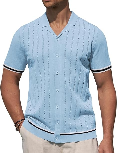 Premium Fabric: The mens dress shirts made of high quality fabric, the fabric is soft, breathable, lightweight, and skin-friendly,allowing the body to move more freely, comfortable Distinctive Contrast Design - Alimens & Gentle Men Casual Button Down Shirt is designed with turn down collar, short sleeve, hallow out design, unique contrast design. Vintage and Simple shape is easy with a showcase of your personal trend match Clothing Match– Men's Short Sleeve Knit Shirt, paired with linen pants, shorts and jeans for casual、vacation look, with T-shirt and tank top as cardigans for daily outfits.Its versatile design ensures a polished look, striking the perfect balance between casual and refined for any occasion Various Occasions– This Men's Knit Button Down Shirt is perfect for a wide range of events, Suitable for golf, vintage cosplay, beach, retro party, 70s/80s/90s prom, vacation, informal business, holiday, dating, wedding, travel, streetwear or any casual daily wear Warm Tips – We recommend washing the Polo Shirt before first use. It can be hand-washed or machine-washed on a gentle cycle. Hang to dry or tumble dry on low. Be sure to check our size chart carefully before placing your order