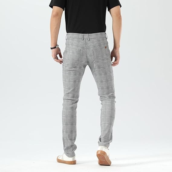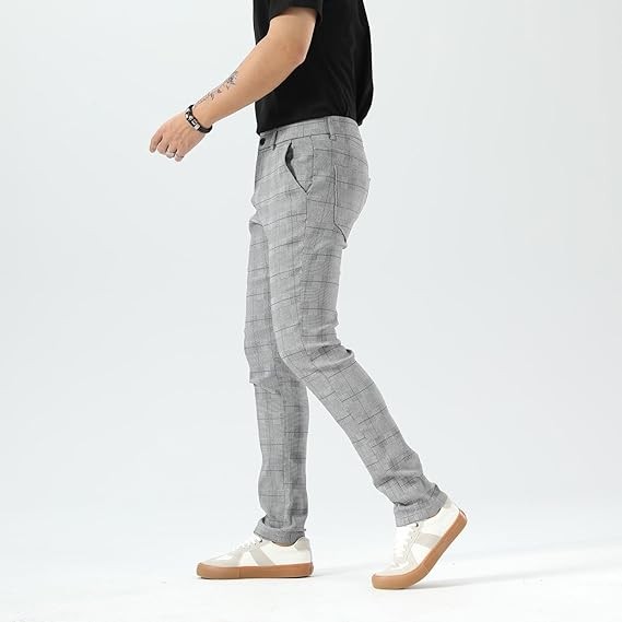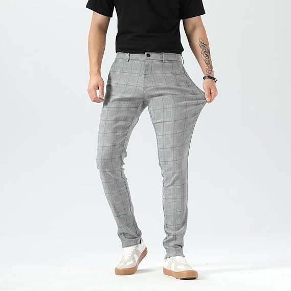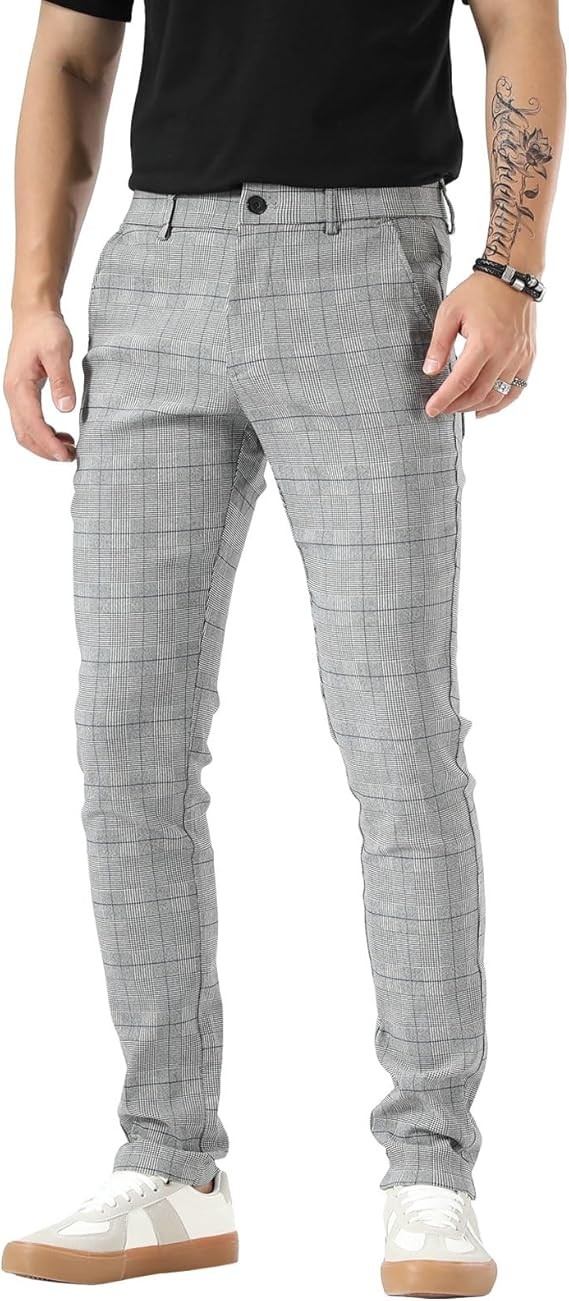 Men's Plaid Pants Skinny Dress Pants for Men Skinny Chino Pants Men