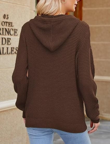 For an oversized look, choose your normal size; for a fitted look, choose one size smaller. Please consult the size chart before placing your order to ensure the best fit. Model is wearing size S and is 5'9'' tall, BWH: 33.8'', 24.8'', 36.2''. S=4-6, M=8-10, L=12-14, XL=16-18. Fall Oversized Hoodies: Wear this cozy trendy sweater hoodie with three buttons that you can open or close as needed. The cuffs and hem are designed with elastic ribbed patterns, adding a sense of fashion and fit. Knitted Long Sleeve Sweatshirts: Comfy drawstring hoodie with a kangaroo pocket is a classic design that gives you a casual style. It is also convenient to carry things like phone or keys and keep your hands warm.