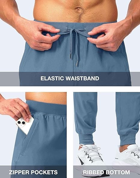 Mens Joggers with Zipper Pockets Lightweight Sweatpants Workout Athletic Pants for Gym Running Golf