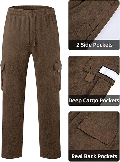 Men's Cargo Sweatpants Casual Fleece Joggers Loose Fit Open Bottom Athletic Pants for Men with Pockets