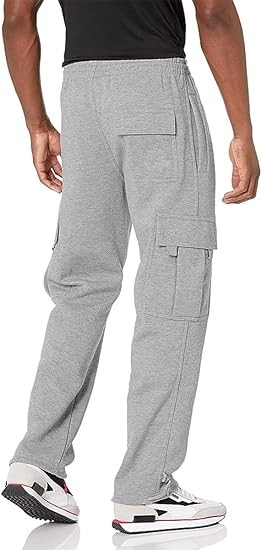 Men's Cargo Sweatpants Casual Fleece Joggers Loose Fit Open Bottom Athletic Pants for Men with Pockets