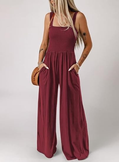 Women's Overalls is made with lightweight and soft material, which are smooth, elastic and stretchable, flexible and breathable, comfortable to wear. Not see through. Feature: One Piece Sleeveless Jumpsuits, Square Neck, Wide Leg Pants, Two Side Pockets, Solid Color, Stretchable Long Pants Jumpsuit, Loose Fit, Casual Style. Match: Great with jacket, sneakers, Sandals, Heels and Beach hat for outwear. A perfect jumpsuit for your summer. Wear a cardigan over wide leg jumpsuit /dress on cool weather. Ocassion: One Piece Fashion Long Jumpsuit Overalls Suitable for Beach, Travel, Vacation, Office, Streetwear, Cocktail, Daily Life. Perfect Match with T-Shirts, Tops, Blouse and Sneakers.