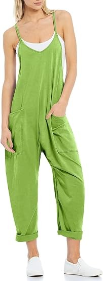 Features: Women sleeveless rompers, with relaxed fit design, solid color, two big side pockets, low crotch, back pocket decoration, long pants jumpsuits, cute and stylish outfits for women