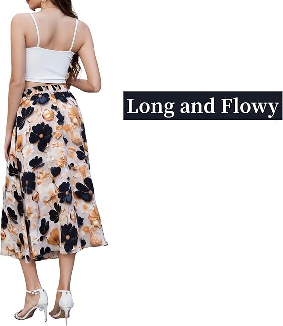 ? 【Hidden Pocket】: These long skirts for women have two large pockets, which can store mobile phones, keys, and other items, freeing your hands. ? 【Elastic Waistband Design】: The elastic waistband of this long skirt has strong elasticity. suitable for most body types, and is super comfortable to wear in spring and summer. ? 【High-Quality Fabric】: These women's skirts are made of high-quality fabric, which is light, soft, breathable, comfortable, and full of texture. Wearing this maxi skirt in summer will make you very comfortable. ? 【Applicable Occasions】:This long maxi skirt can be paired with shirts, high heels, or flat shoes, making you elegant and feminine. It also suits various occasions, such as dating, parties, beaches, holidays, weddings, cocktail parties, and daily leisure.