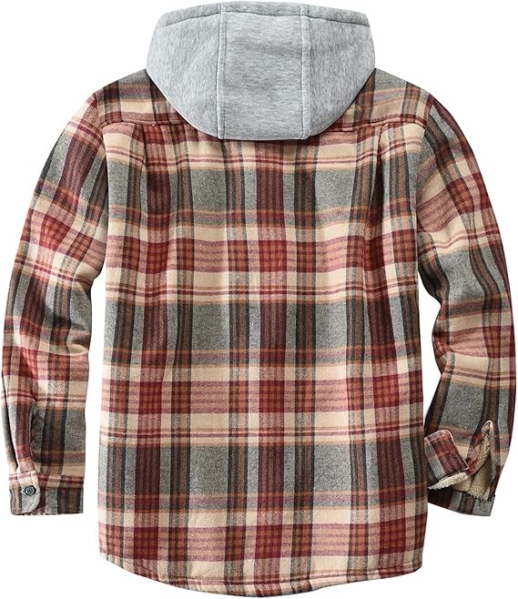 Comfortable Fit: This long sleeve flannel shirt crafted with a 100% Cotton flannel shell and soft beige sherpa lining will keep you warm all season long. Your new wardrobe favorite. Features: Button, long sleeves(The sleeves lined), 2 side pockets, drawstring hood, plaid element outer and fuzzy fleece inside, to provide extra warmth and comfort. Size: Our flannel shirts are regular fit style, a variety of sizes and colors for you to choose, please refer to the size chart to choose the size that suits you. Occasion: This is a versatile hooded jacket that will look stylish with your Tshirt and jeans. Perfect For Daily Wear, such as hiking, trekking, camping, hunting, biking and other outdoor activities. Any occasion is perfect in Spring, Fall and Winter.