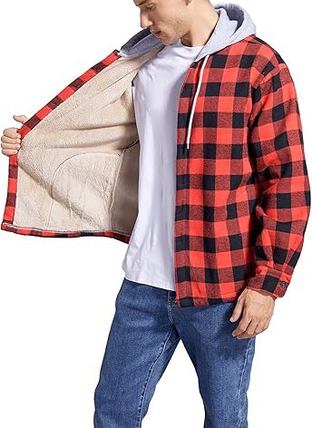 Comfortable Fit: This long sleeve flannel shirt crafted with a 100% Cotton flannel shell and soft beige sherpa lining will keep you warm all season long. Your new wardrobe favorite. Features: Button, long sleeves(The sleeves lined), 2 side pockets, drawstring hood, plaid element outer and fuzzy fleece inside, to provide extra warmth and comfort. Size: Our flannel shirts are regular fit style, a variety of sizes and colors for you to choose, please refer to the size chart to choose the size that suits you. Occasion: This is a versatile hooded jacket that will look stylish with your Tshirt and jeans. Perfect For Daily Wear, such as hiking, trekking, camping, hunting, biking and other outdoor activities. Any occasion is perfect in Spring, Fall and Winter.