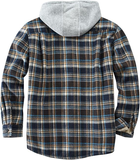 Comfortable Fit: This long sleeve flannel shirt crafted with a 100% Cotton flannel shell and soft beige sherpa lining will keep you warm all season long. Your new wardrobe favorite. Features: Button, long sleeves(The sleeves lined), 2 side pockets, drawstring hood, plaid element outer and fuzzy fleece inside, to provide extra warmth and comfort. Size: Our flannel shirts are regular fit style, a variety of sizes and colors for you to choose, please refer to the size chart to choose the size that suits you. Occasion: This is a versatile hooded jacket that will look stylish with your Tshirt and jeans. Perfect For Daily Wear, such as hiking, trekking, camping, hunting, biking and other outdoor activities. Any occasion is perfect in Spring, Fall and Winter.