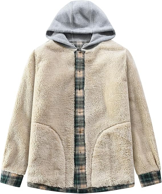 Comfortable Fit: This long sleeve flannel shirt crafted with a 100% Cotton flannel shell and soft beige sherpa lining will keep you warm all season long. Your new wardrobe favorite. Features: Button, long sleeves(The sleeves lined), 2 side pockets, drawstring hood, plaid element outer and fuzzy fleece inside, to provide extra warmth and comfort. Size: Our flannel shirts are regular fit style, a variety of sizes and colors for you to choose, please refer to the size chart to choose the size that suits you. Occasion: This is a versatile hooded jacket that will look stylish with your Tshirt and jeans. Perfect For Daily Wear, such as hiking, trekking, camping, hunting, biking and other outdoor activities. Any occasion is perfect in Spring, Fall and Winter.