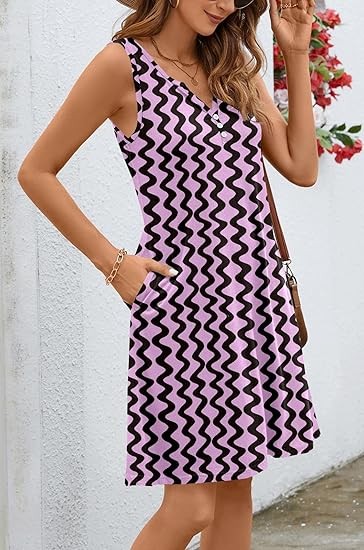 Summer Dresses for Women 2024 Beach Loose Casual A Line Dress Sleeveless V-Neck Sundress with Pockets